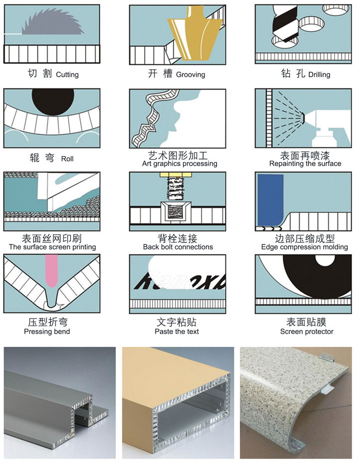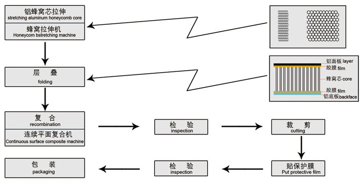 鼎馳鋁蜂窩板采用3003西南鋁作為面板和底板,雙組份樹脂膠水,芯材為鋁質(zhì)六邊形蜂窩,采用抽真空或?qū)訅汗に噺秃隙?。產(chǎn)品廣泛應用于:外墻裝飾蜂窩板、內(nèi)裝蜂窩板、石材蜂窩板、沖孔蜂窩、植絨吸音蜂窩板、車船箱體蜂窩板等領域。